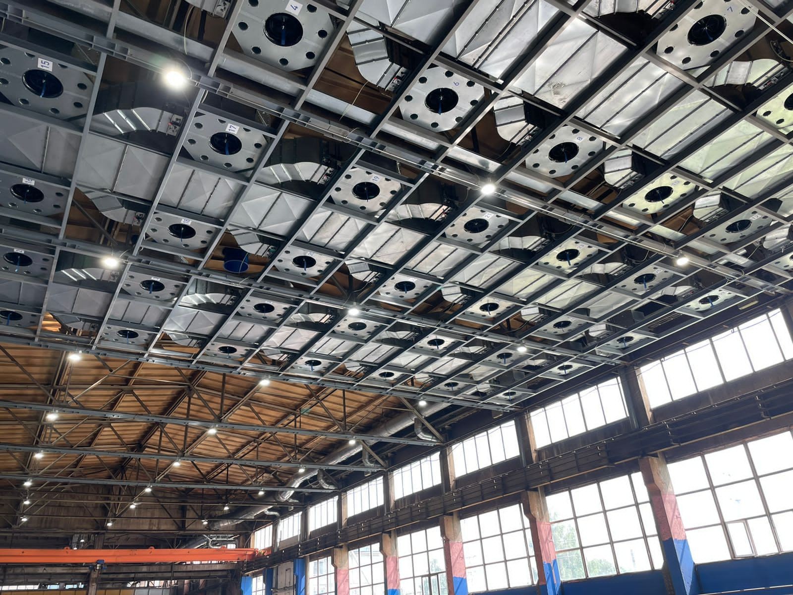 Подогретый воздух подается посредством воздуховодов в надкрановое пространство, через 2-хпоточные ламинарные диффузоры подается с высоты в зону, где происходит окраска.