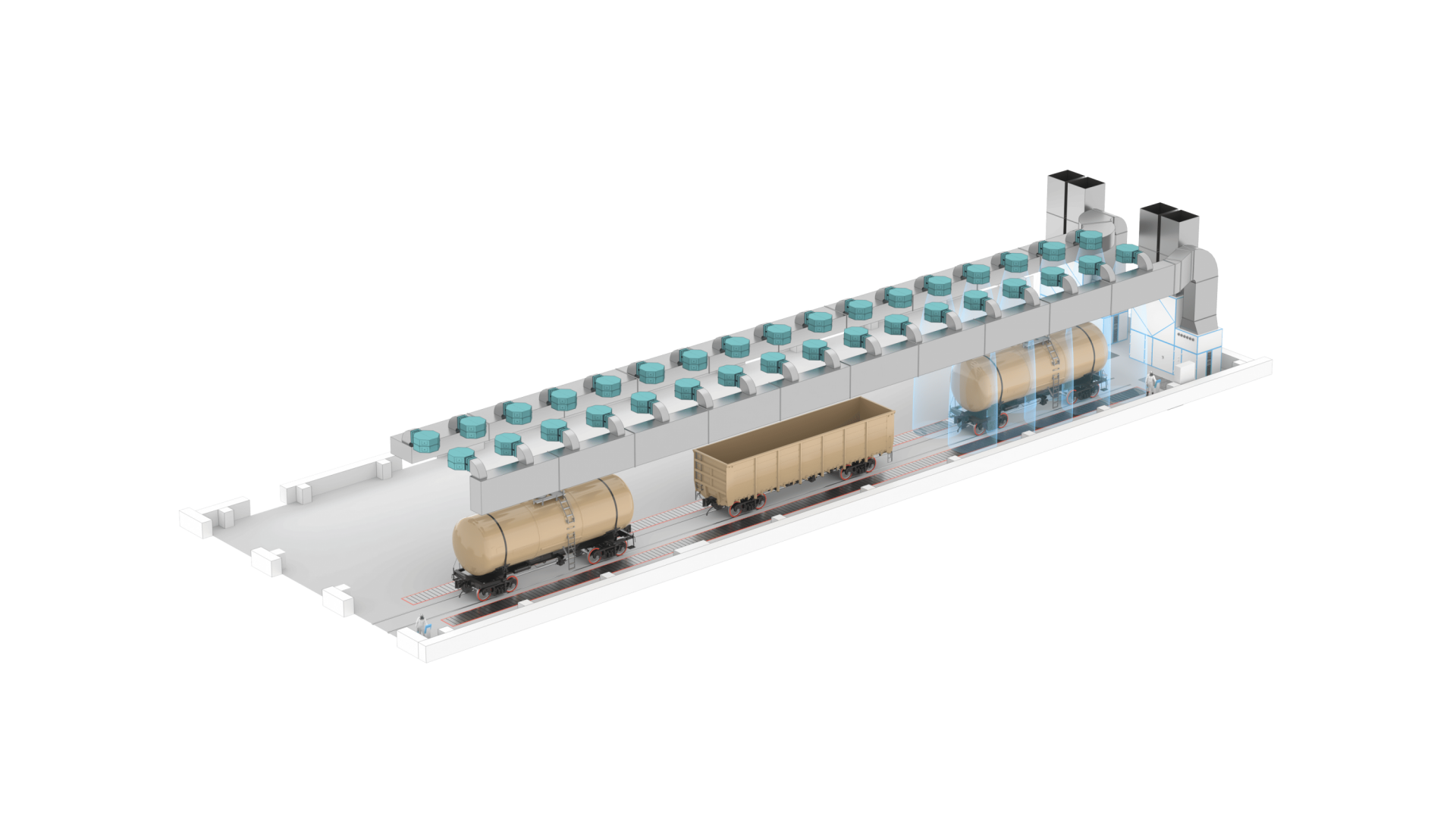 - Вентиляционный агрегат SPK-VU-50 с искробезопасным рабочим колесом и взрывозащищёнными электродвигателями, пропускной способностью 50 000 м³/ч — 2 шт.;