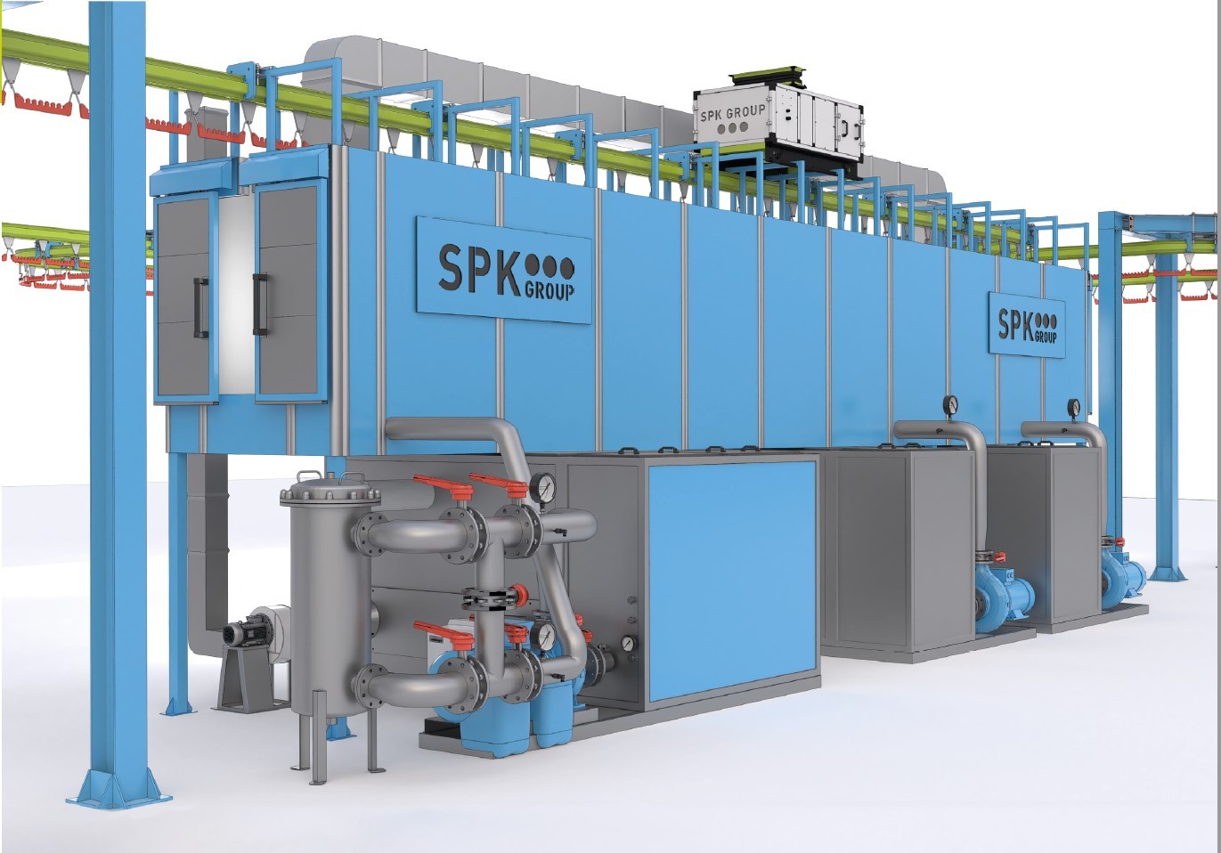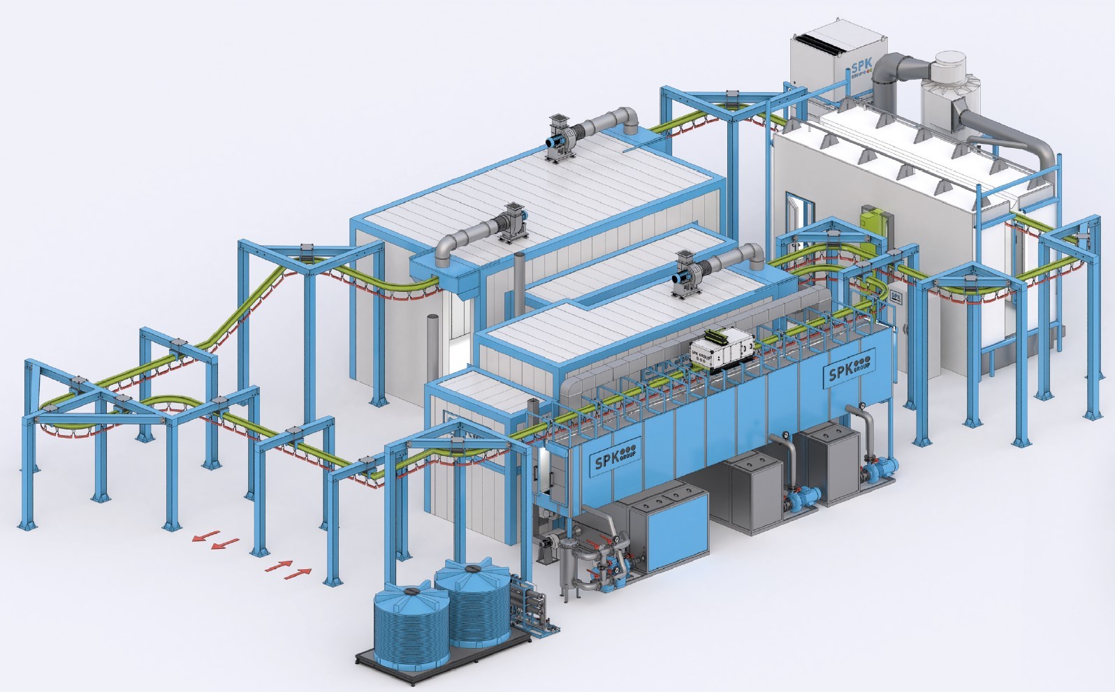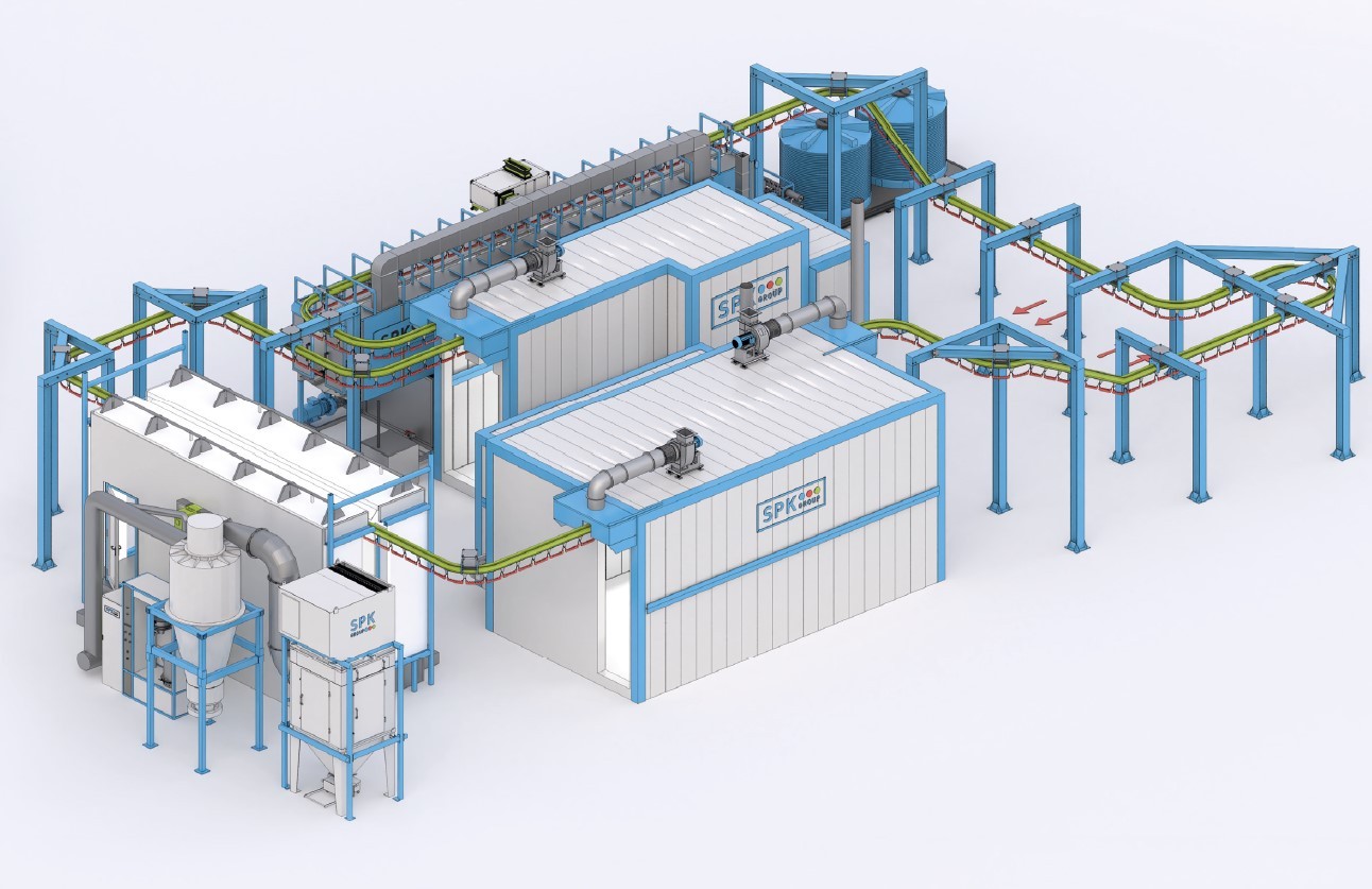 Комплекс оборудования для химической подготовки и порошковой окраски изделий с автоматическим конвейером SPK