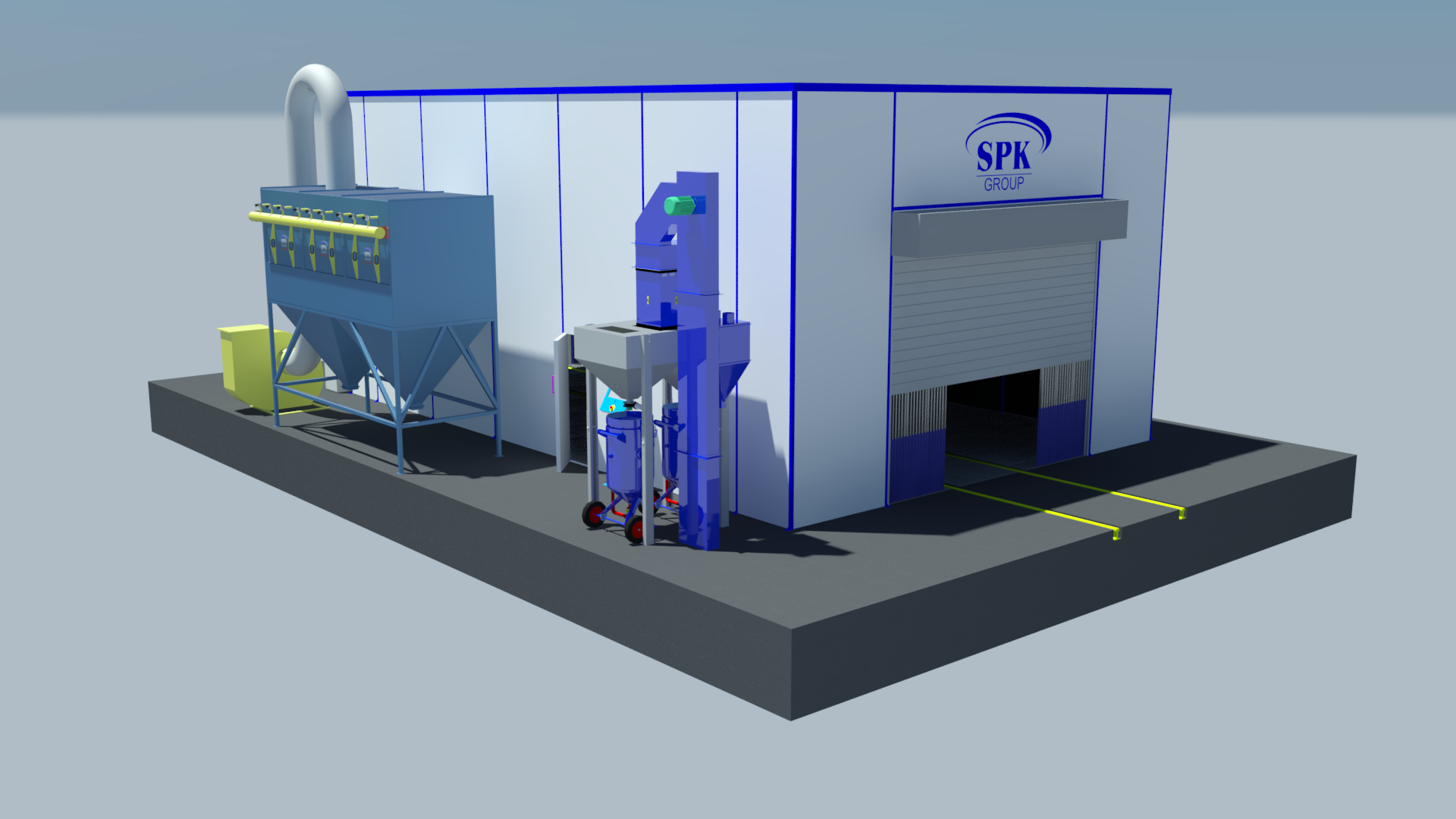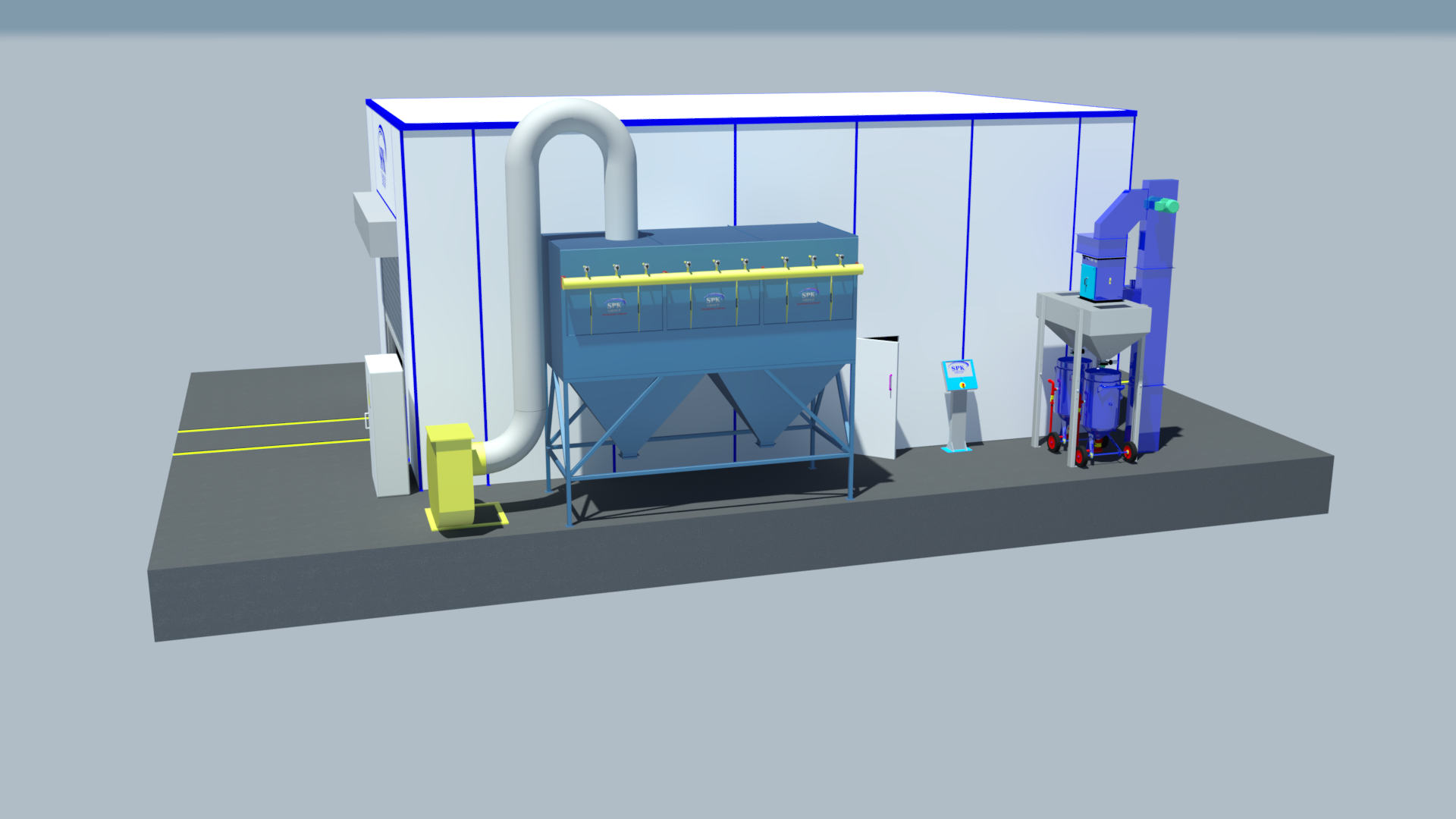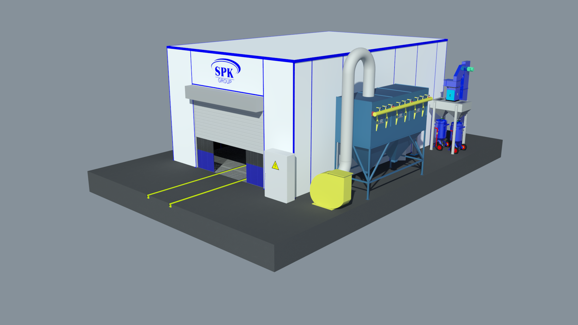 - патронной фильтровальной установки, которая включает в себя вентиляторы с прямым приводом, емкости для приема пыли и дифференциальную автоматическую очистку сжатым воздухом;