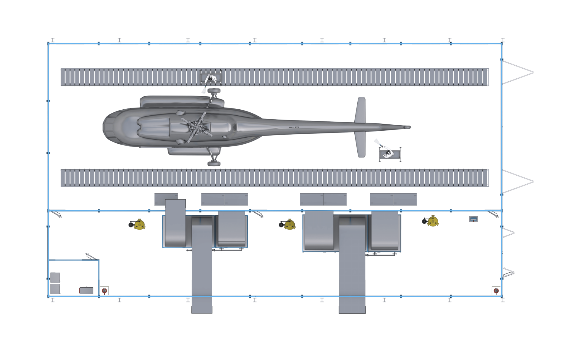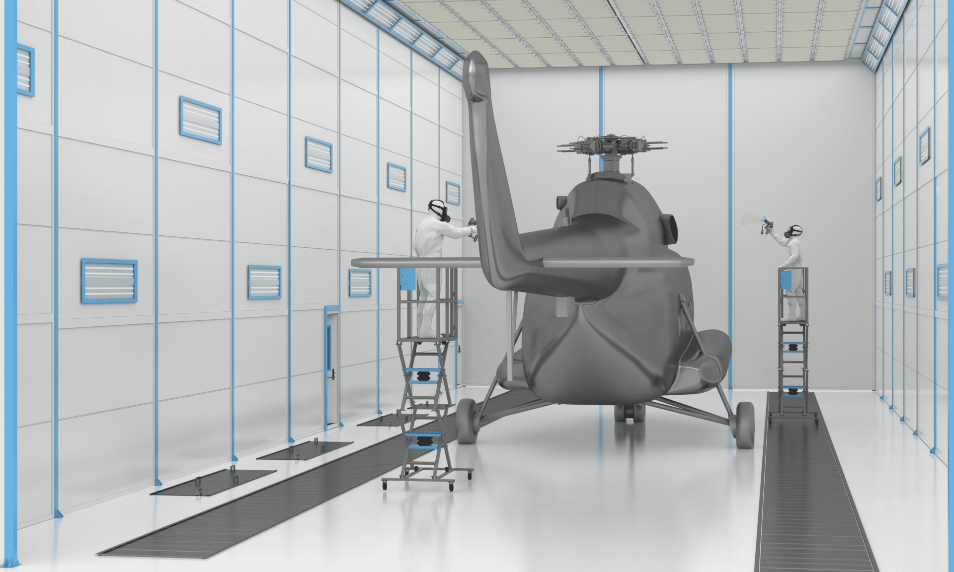Камера предназначена для нанесения и сушки лакокрасочных покрытий (ЛКП) вертолетной техники.