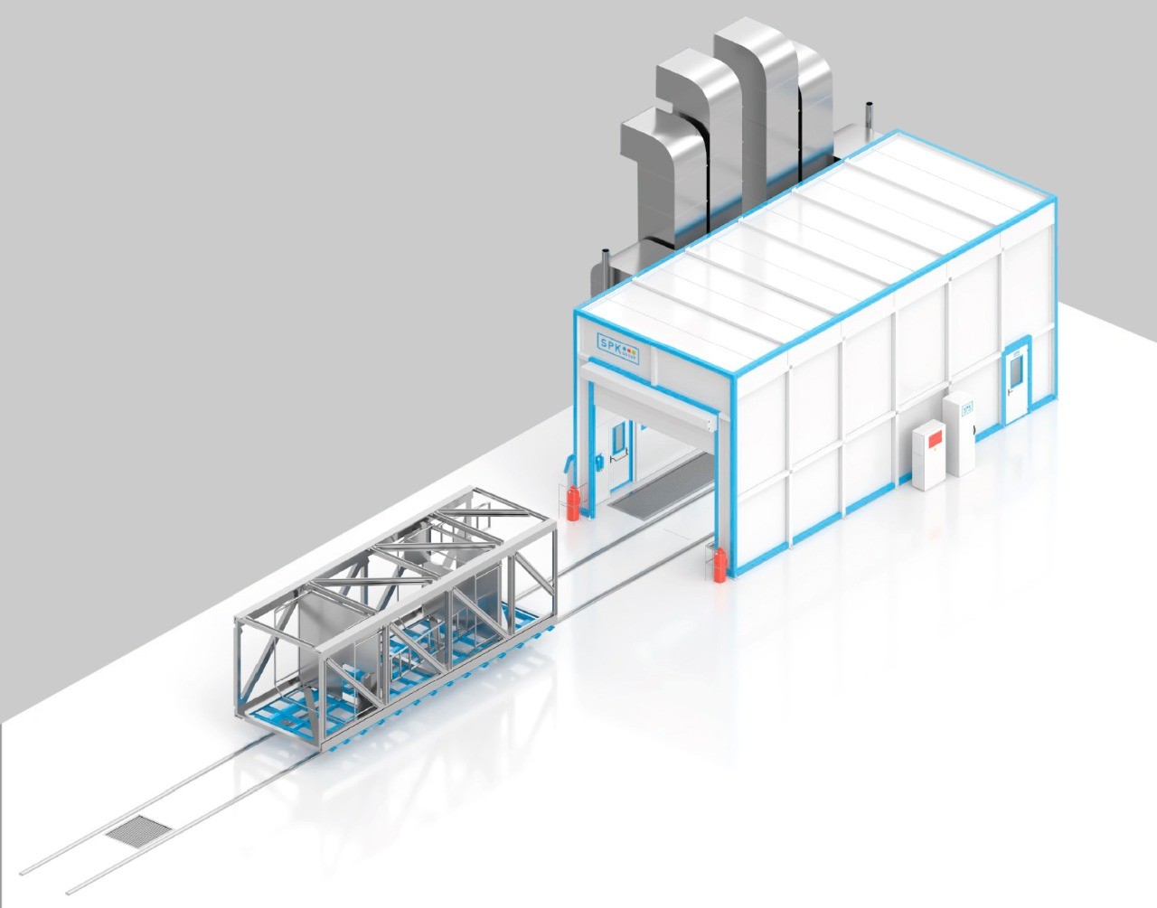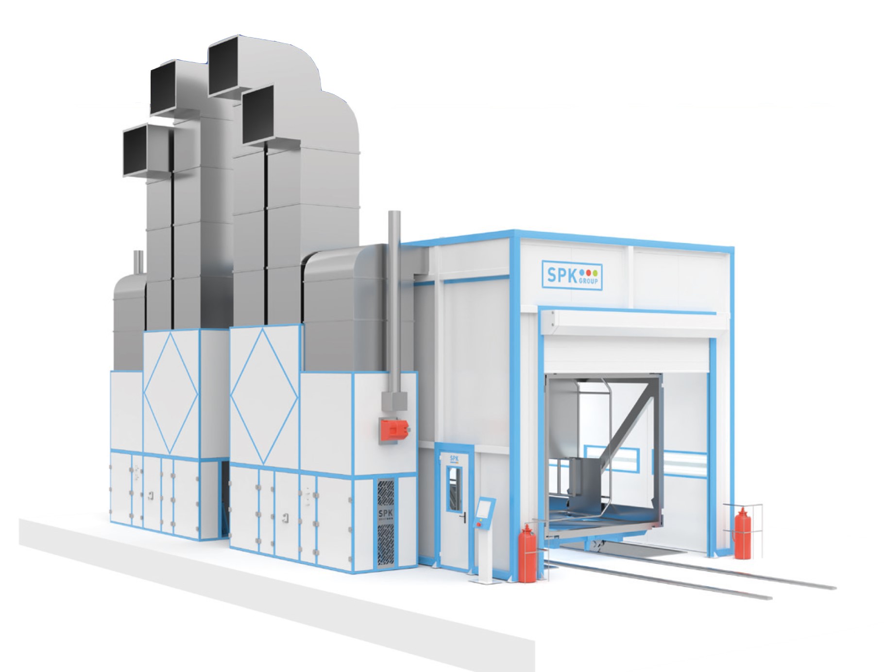 Окрасочно-сушильная камера тупикового типа SPK-SCB-12.5.5, далее — ОСК, предназначена для подготовки изделий к покраске, нанесения лакокрасочных покрытий и их сушки при повышенной температуре. Внутри камеры осуществляется равномерный поток предварительно нагретого и очищенного воздуха. Направление воздушного потока — сверху вниз. Камера использует сухую фильтрацию воздуха, устраняя остатки краски, что обеспечивает высокое качество нанесения покрытий и исключает необходимость дополнительных фильтрационных систем.