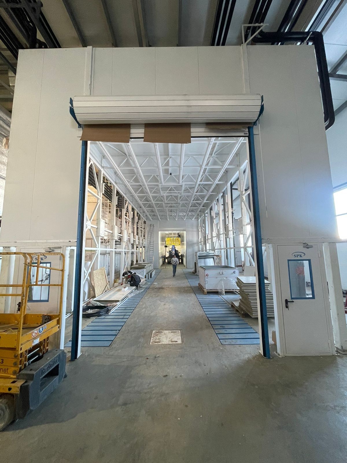 - Ворота: два комплекта роллетных ворот промышленного типа по 3,5×4,5 м (одни из ворот объединены с сушильной камерой).