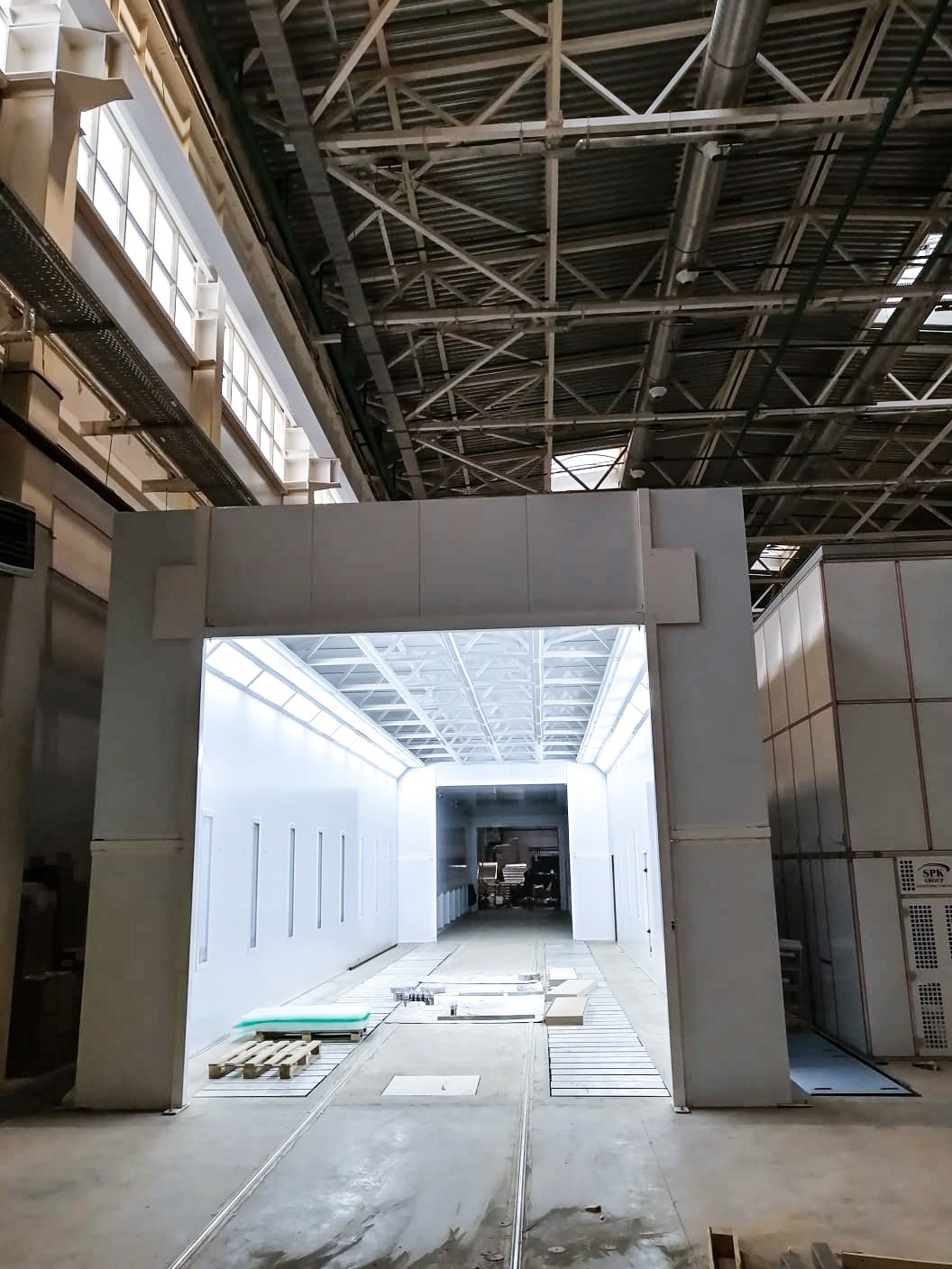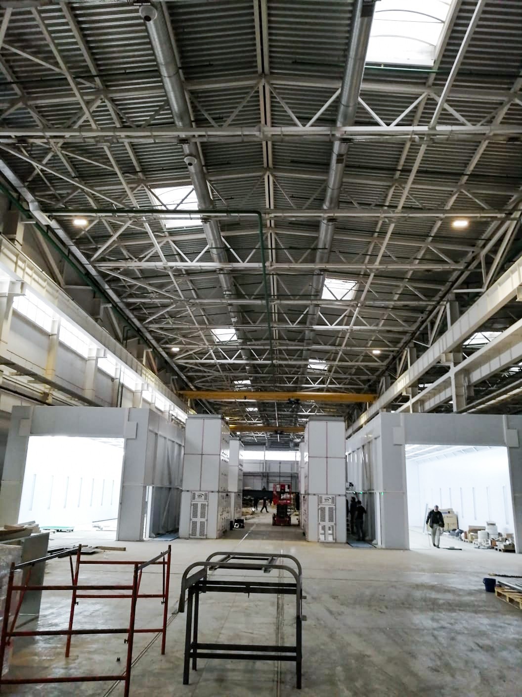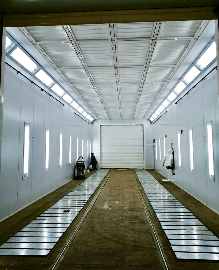 - Камеры грунтовки и окраски изготовлены под дальнейшую роботизацию и выдерживают все расчетные статические и динамические нагрузки от роботов, способных дотянуться даже до внутренних поверхностей рамы.