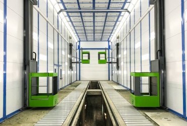 Габаритные размеры камеры составляют 30×13×8,5 метров. Вытяжка осуществляется посредством двух каналов. Навес выполнен из стальной конструкции с крышей. Техническое помещение предназначено для размещения системы автоматики, пожаротушения, оборудования для подготовки воздуха и трафаретной системы.
