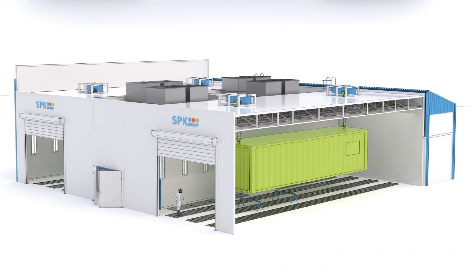 Уличная двухсекционная окрасочно-сушильная камера для жд вагонов SPK-SCB-26.24.10.